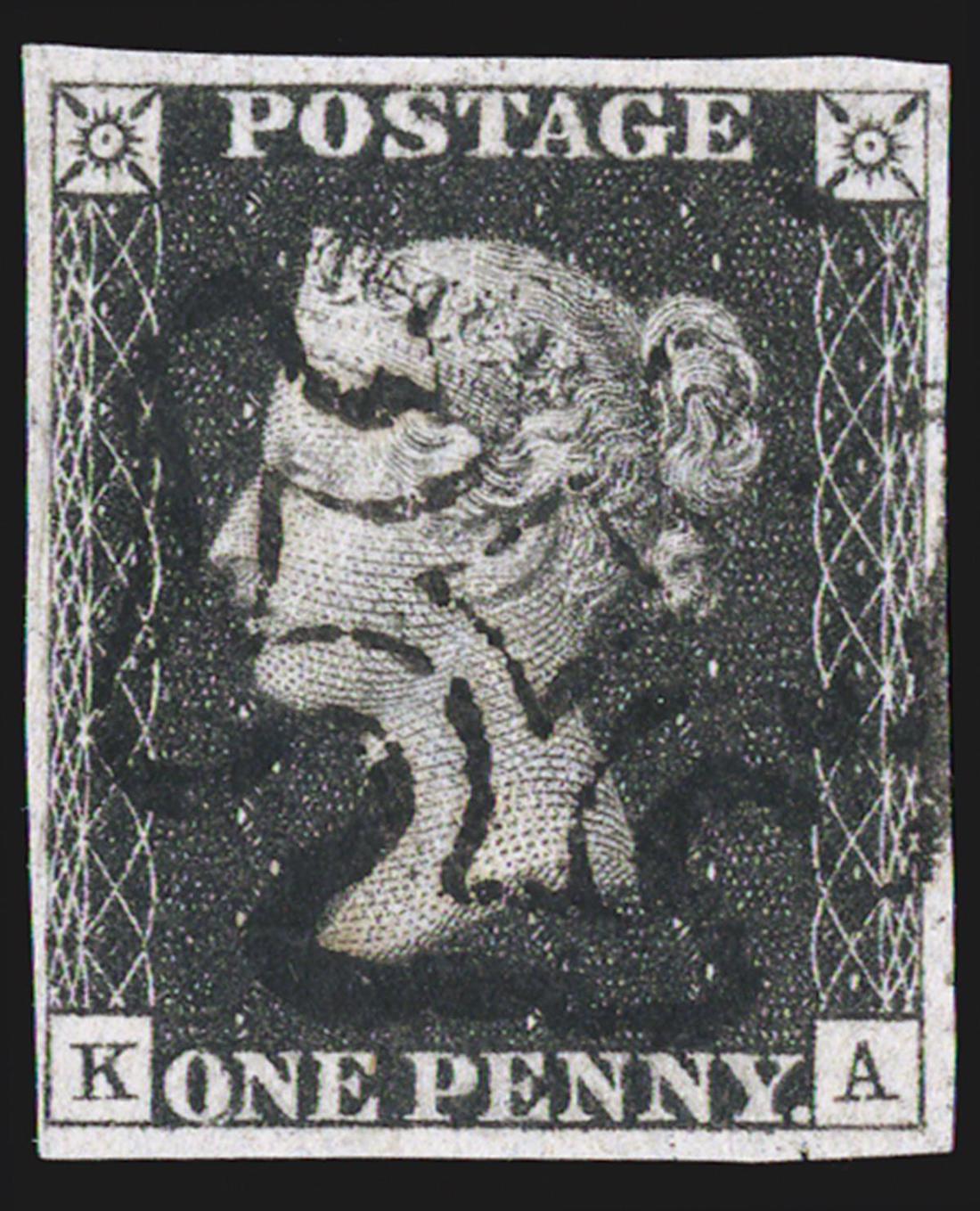 #1, 1840 1d Black, Plate 8, ample to large margins all around, intense color and crisp impression on fresh white paper, cancelled by neat strike of black Maltese cross, very fine (S.G. #2; £525).