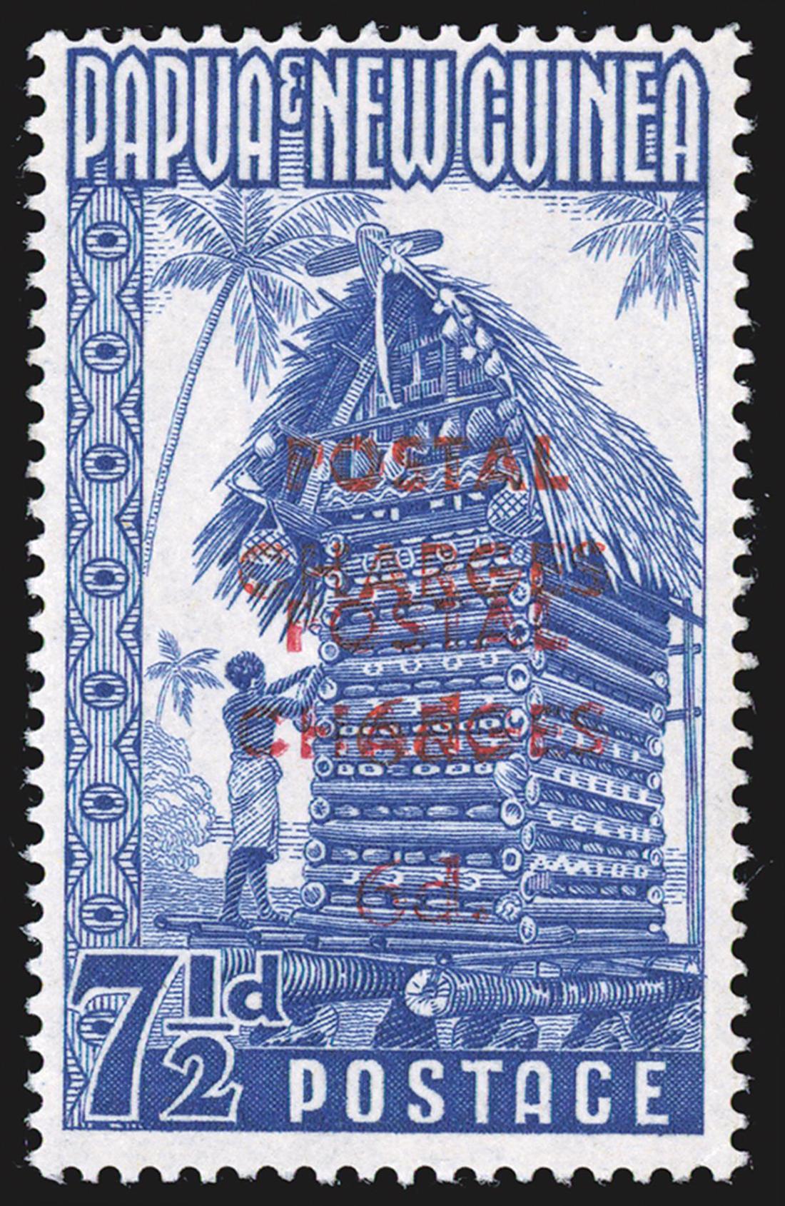 #J3a, 1960 6d on 7½d Blue Postage Due surcharge in red, double surcharge, post office fresh, o.g., n.h., fine and scarce; quite undercataloged by Scott; 1994 Brandon certificate (S.G. #D4a; £1,200).