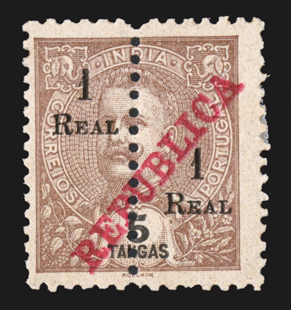#262, 1912-13 "1 Real" Surcharge on half of 5t Brown on straw, perforated vertically through the middle, unsevered pair, usual slightly tropicalized o.g., very fine; much scarcer than its catalog value would indicate.