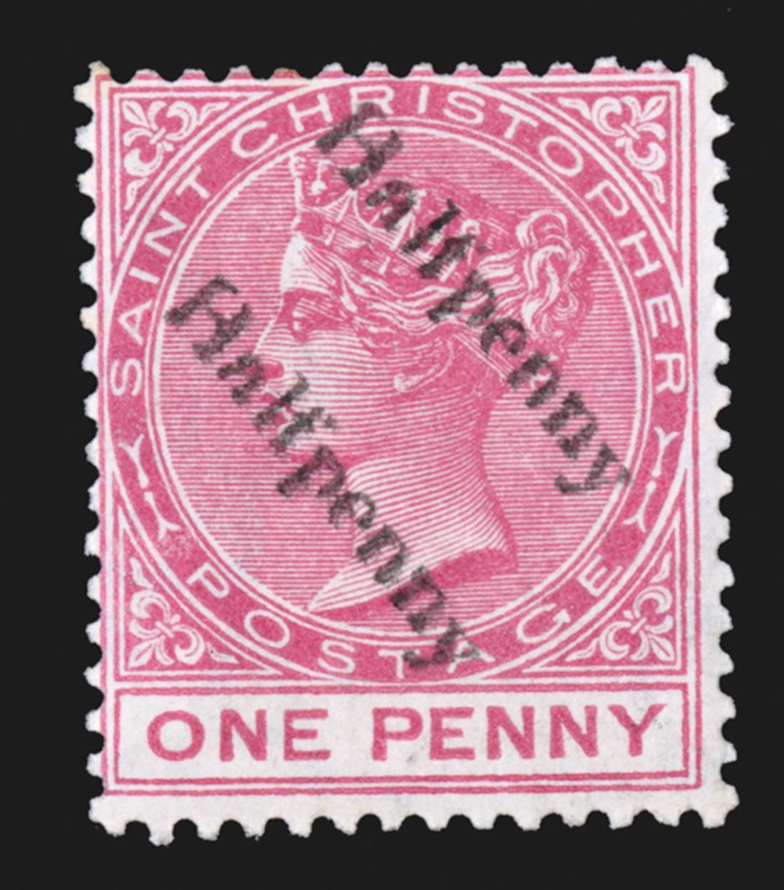 #17c, 1885 "Halfpenny" Surcharge on half of 1d Rose, unsevered pair, fresh mint o.g., l.h. single and used example with "A12" barred oval cancel, fine-very fine (S.G. #23a; £240).