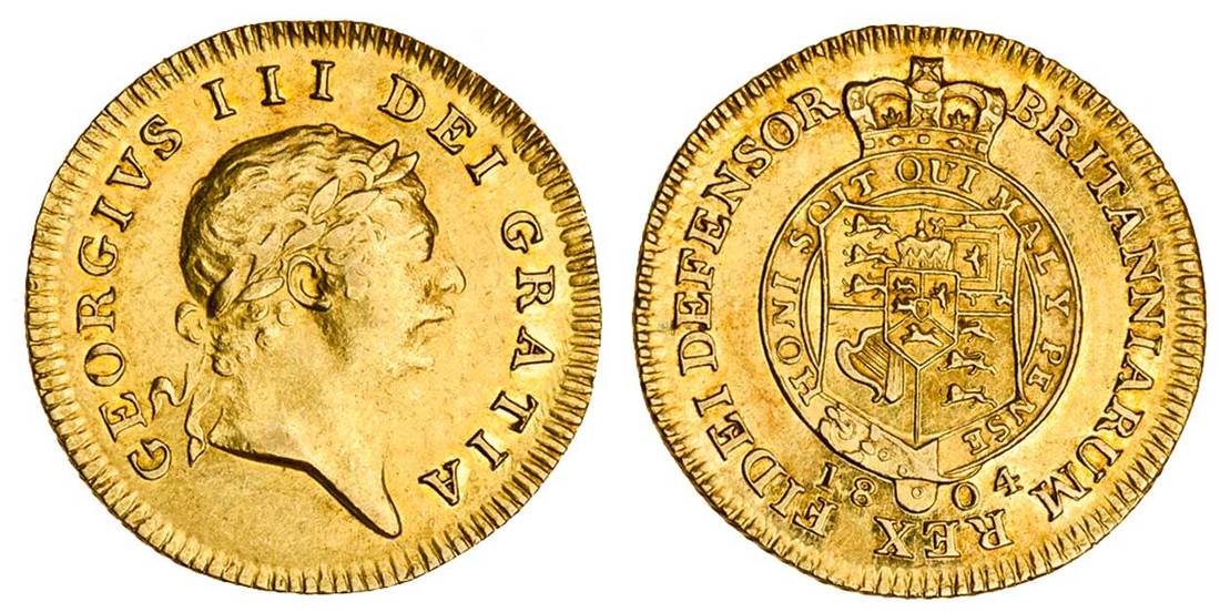 George III (1760-1820), Half-Guinea, 1804, seventh laureate head right with short hair, rev. shield in Garter (MCE 442; S.3737), nearly extremely fine