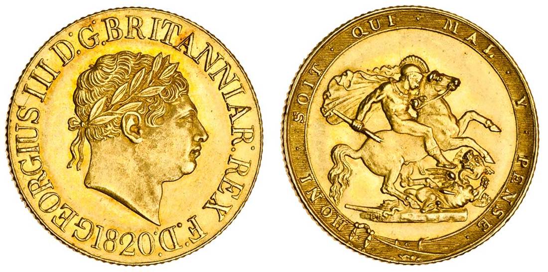 George III (1760-1820), Sovereign, 1820, open 2, laureate head right, rev. St George and dragon (MCE 466; S.3785C), extremely fine