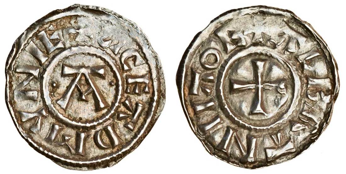 Danelaw, East Anglia (c.885-915), St Edmund memorial coinage, Penny, 1.44g, Albert, sc eadmvnd, s horizontal, around large , rev. albrt niiaoe, cross patteé (N.483; S.960), part of legends weak, very fine