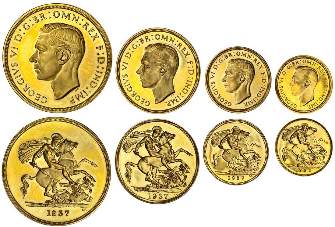 George VI (1936-52), proof set, 1937, 5-Pounds, 2-Pounds, Sovereign, Half-Sovereign, bare head left, rev. St George and dragon (S.PS 15), brilliant uncirculated, in case of issue (4)
