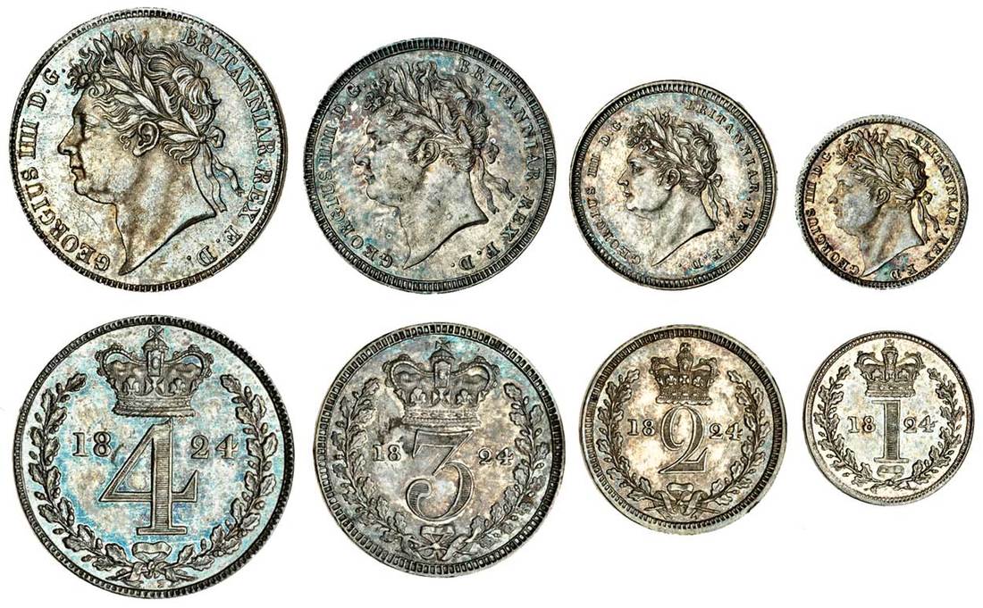 George IV (1820-30), Maundy set, 1824, laureate head left, rev. value (ESC 2428; S.3816), extremely fine, toned, in fitted case (4)