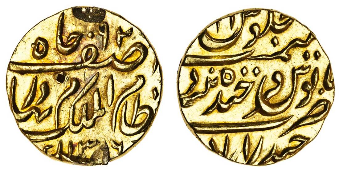 India, Hyderabad, Mir Mahbub Ali Khan II (1868-1911), AV Ashrafi, 11.19g, Haidarabad, AH1316 (KM.22), ex mount, with one obverse test punch, good very fine
