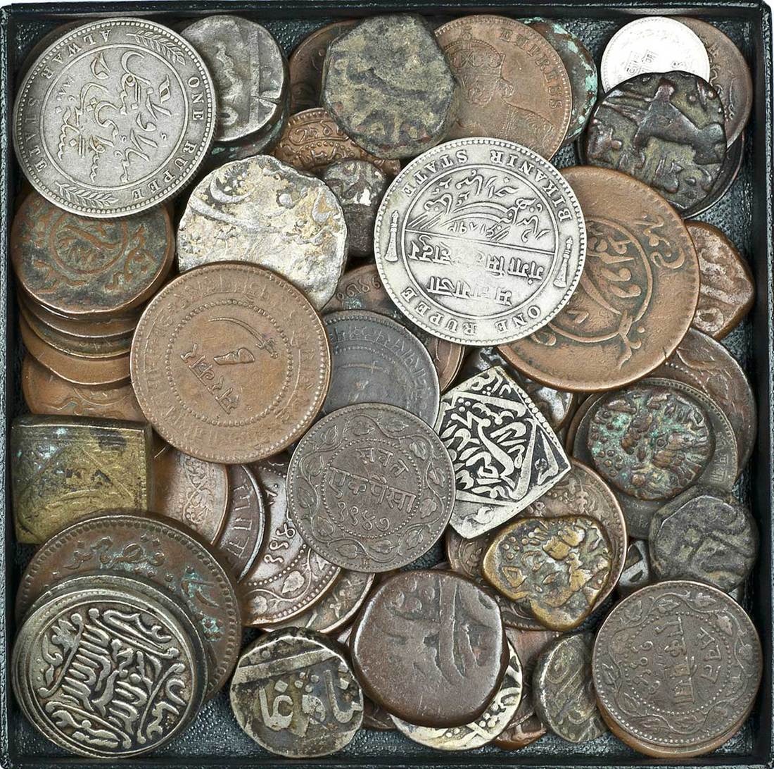 India, Princely States, miscellaneous Coins AR (9), AE (63), including a few earlier issues, together with Tokens (4), average condition fine to very fine (76)