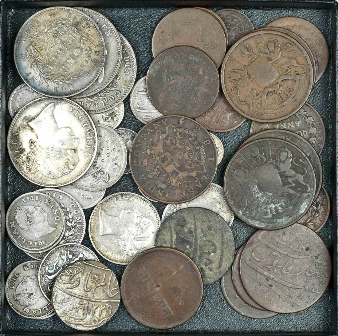 India, East India Company, miscellaneous Coins, AR (24), AE (19), including William IV, ½-Rupee, ¼-Rupee (4), 1835, Victoria, Rupee (4), ½-Rupee, ¼-Rupee (2), 1840, 2-Annas (7), about fine to very fine (43)