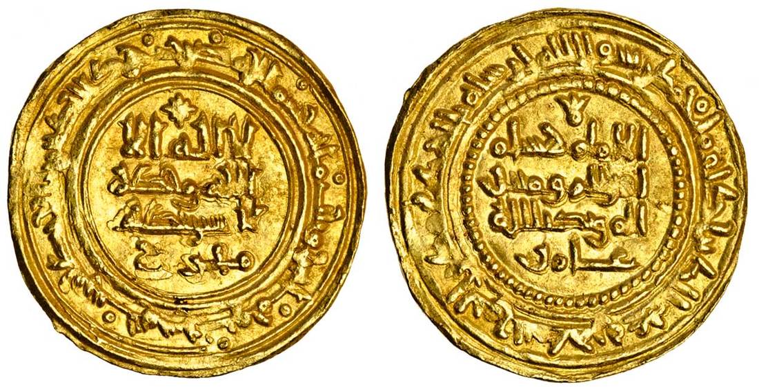 Spanish Umayyad, Hisham II (first reign 976-1009), AV Dinar, 4.16g, al-Andalus, AH386, Mufarrij named under legend, rev. 'Amir named under legend (A.353), extremely fine, scarce