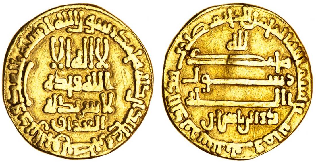 Abbasid, temp. al-Mamun (810-833), AV Dinar, 4.01g, al-Iraq, AH203, with al-'Iraq below legend, rev. lillah above legend and dhu'l-riyasatayn below (Bernardi 103; A.222.12), about very fine