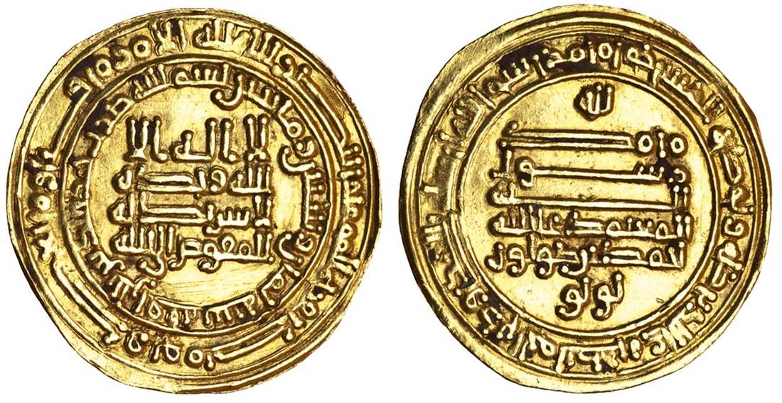 Tulunid, Ahmad bin Tulun (868-84), AV Dinar, 3.48g, al-Rafiqa, AH268, naming lieutenant 'Lu Lu' beneath reverse legend (A.661;Bernardi 192Hn), good very fine, rare