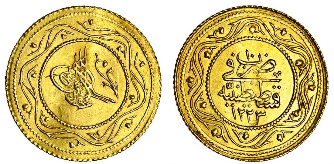 Ottoman, Mahmud II (1808-39), AV 2-Rumi Altin, 4.80g, Qustantiniya, AH1223 / 10 (KM.614), extremely fine, rare without a peircing
