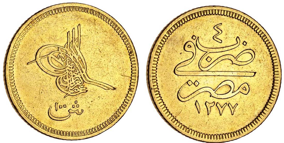Ottoman Egypt, Abdul Aziz (1861-76), AV 100-Piastres, Misr, AH1277 / 4, tughra within plain fields (KM.264; Fr.11a), very fine, scarce