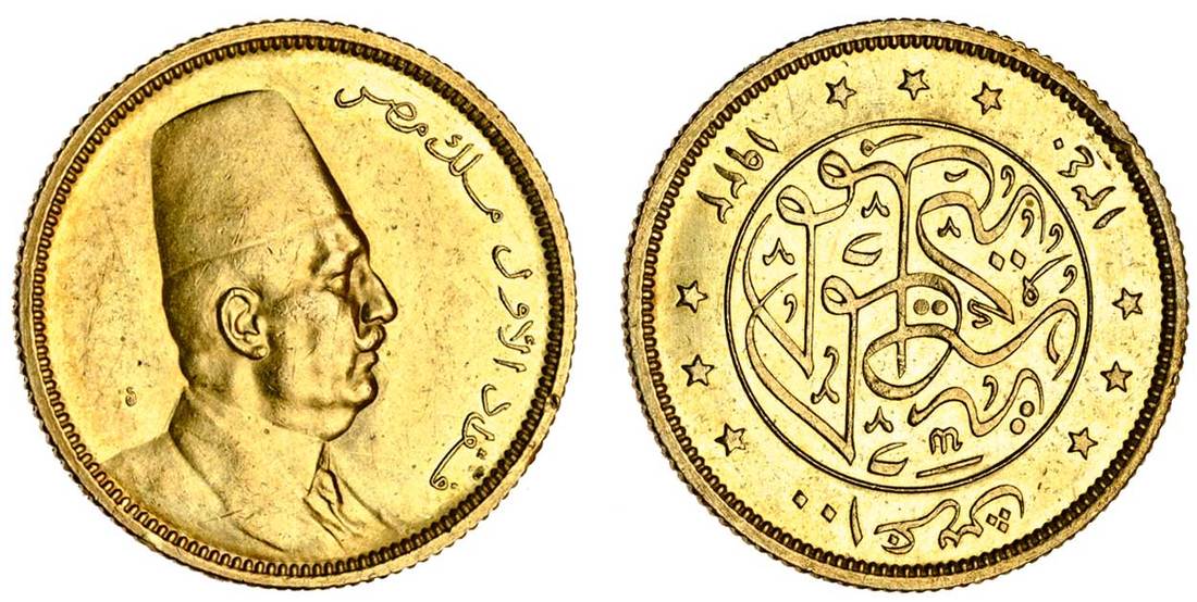 Egypt, Fuad I (1922-1936), AV 100-Piastres, 1922 / AH1340, bust of king Fuad right, rev. ornamental caligraphy within circular frame bearing denomination and dates (KM.341; Fr.28), extremely fine