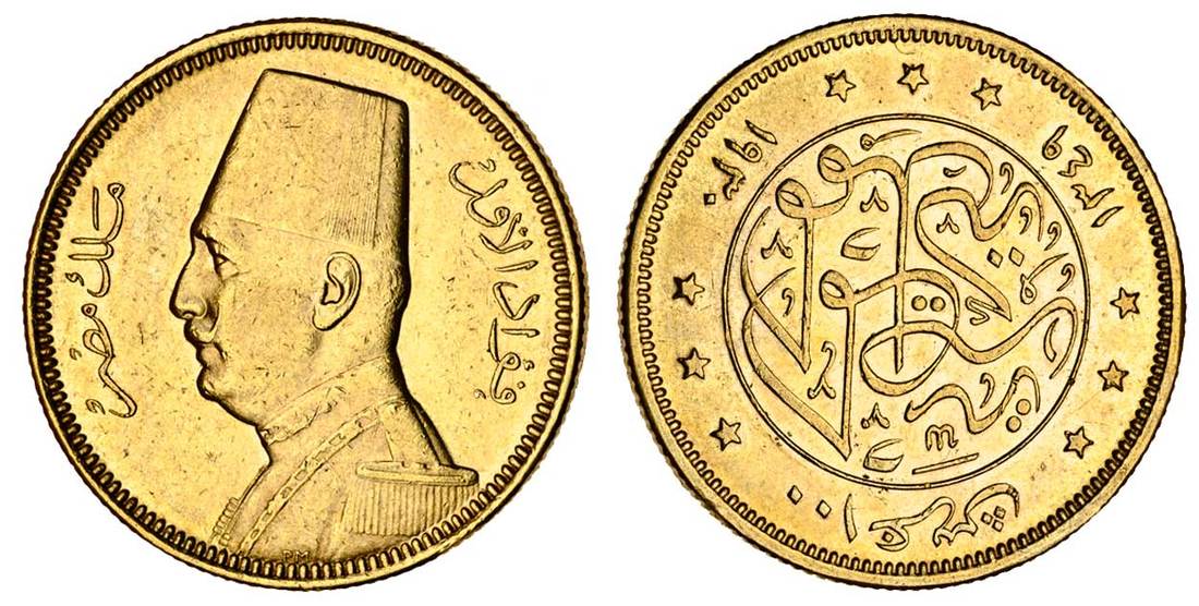 Egypt, Fuad I (1922-1936), AV 100-Piastres, 1930 / AH1349, bust of king Fuad left, rev. ornamental caligraphy within circular frame bearing denomination and dates (KM.354; Fr.32), some contact marks on bust, extremely fine