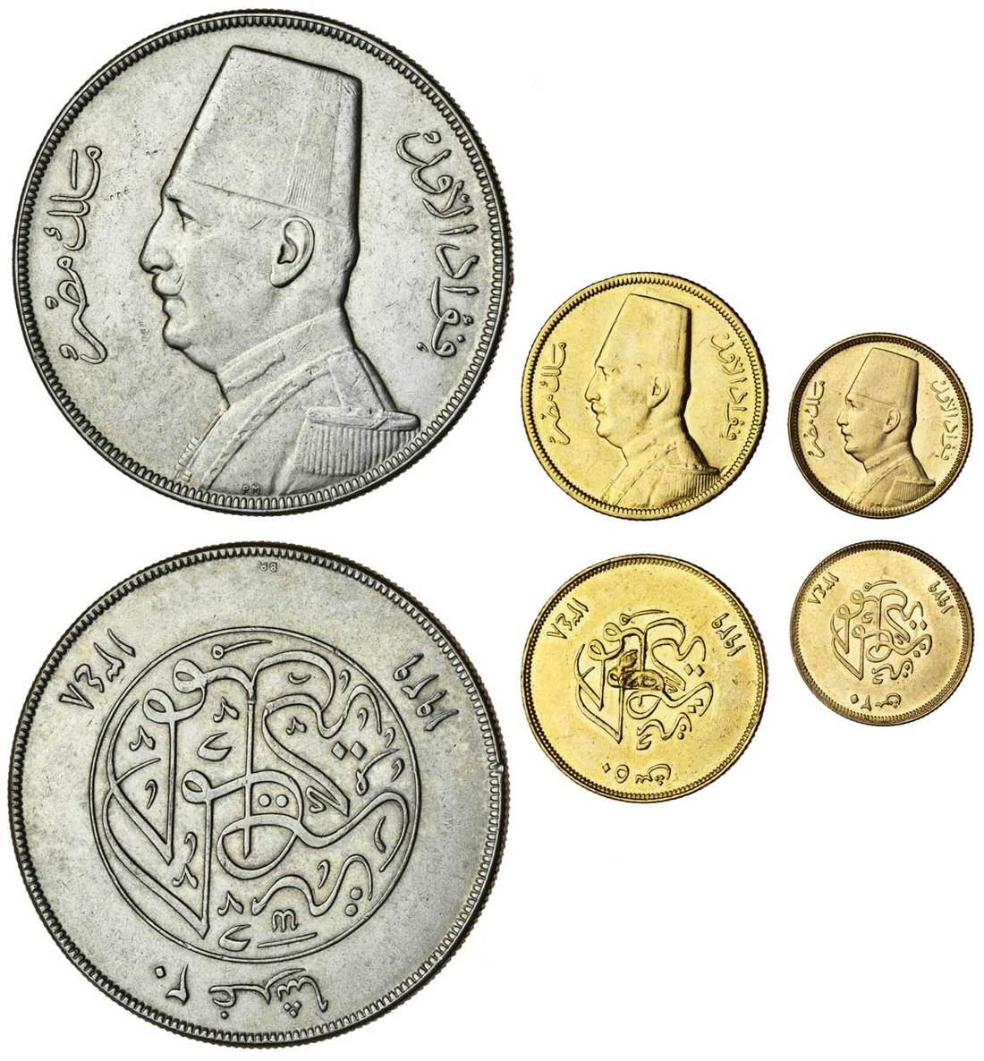 Egypt, Fuad I (1922-1936), AV 50-, 20-Piastres, AR 20-Piastres, 1929 / AH1348, bust of king Fuad left, rev. ornamental caligraphy (KM.351, 352, 353; Fr.32, 33), the 50-Piastres with unobtrusive damage to centre of reverse, about extremely fine or better (3)