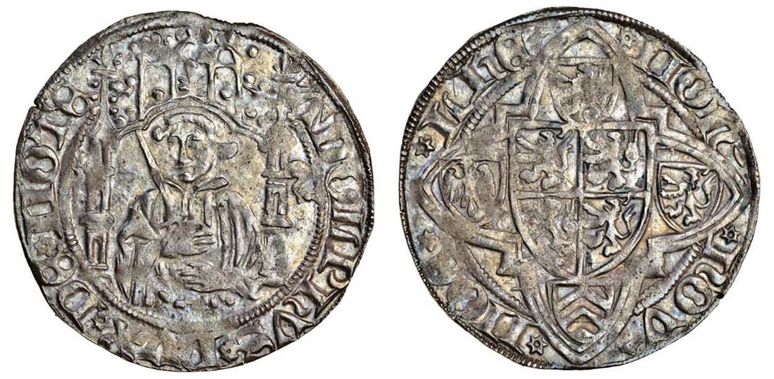 Germany, Berg, Adolf IX (1408-23), Weispfennig, 2.00g, Mulheim, adolphvs* dvx* de* note, bust of duke facing, holding sword, rev. *mon' *nov nos* ihe, shield (Noss 115), very fine