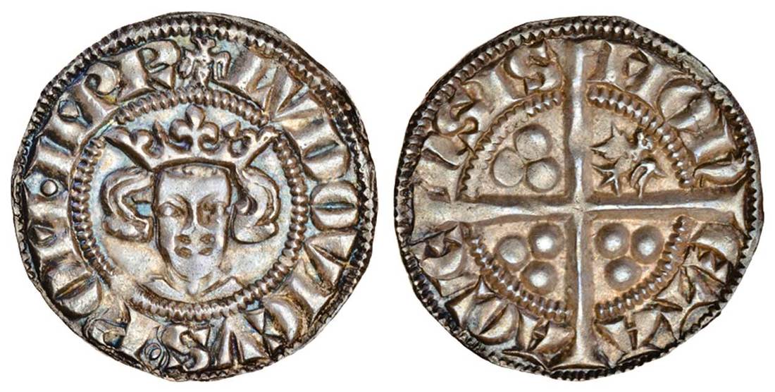 Germany, Aachen (Aix-la-Chapelle), Ludwig IV of Bavaria, as King (1314-47), Sterling, 1.36g, lvdovicvs. rom . rex, eagle at beginning of legend, crowned head facing, rev. mon-eta-que-nsis, long cross with eagle in second quarter, three pellets in remaining angles (Gamberini 1237; Chautard XXII, 4, var.), good very fine