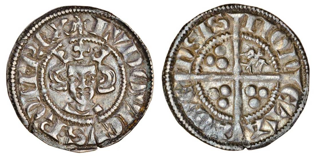Germany, Aachen (Aix-la-Chapelle), Ludwig IV of Bavaria, as King (1314-47), Sterling, 1.45g, lvdovicvs rom . rex, eagle at beginning of legend, crowned head facing, rev. mon-eta-aque-nsis, long cross with eagle in second quarter, three pellets in remaining angles (Gamberini 1237; Menadier 82; Chautard XXII, 5, var.), two minor edge scrapes between 5 and 7 o'clock, very fine