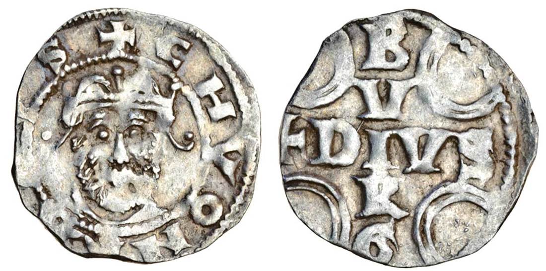 Germany, Duisburg, Konrad II (1024-39), Denar, 1.34g, +chvon[...] s, crowned bearded bust facing, rev. divs-bv-rg cruciform (Dbg. -; Kluge -), very fine