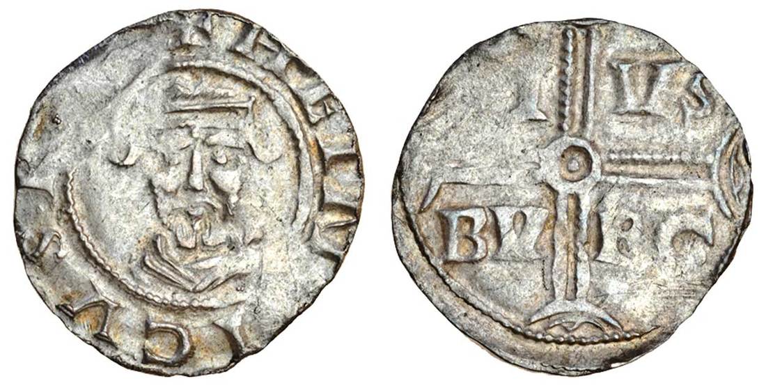 Germany, Duisburg, Henry III, as King (1046-56), Denar, 1.42g, +hein[r]icvs r[...], crowned bust facing, rev. cross, di-vs-bv-rg in angles (Dbg. 316), very fine for this issue