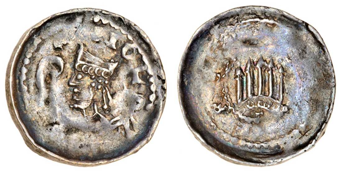 Germany, Trier, Arnold von Niederrhein (1169-83), Denar, 0.82g, bust left, rev. five towers (Weiler 140), fine