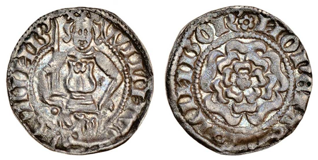 Germany, Limburg, Wilhelm I (1401-57), Pfennig, 0.69g, 1420-30, Hohenlimburg, wilm co de limb, King facing, holding sword and shield, rev. *moneta limbor', rose (Berghaus/Spiegll 33, var.), good very fine
