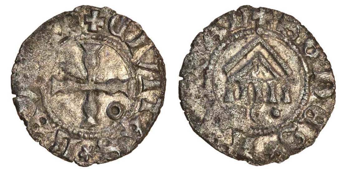 Switzerland, Lausanne, Guillaume de Monthenoy (1394-1406), Denier, 0.81g, +sedes* lavsan, temple, rev. civitas* lav[san] (Dolivo -; HMC 1-495), good fine