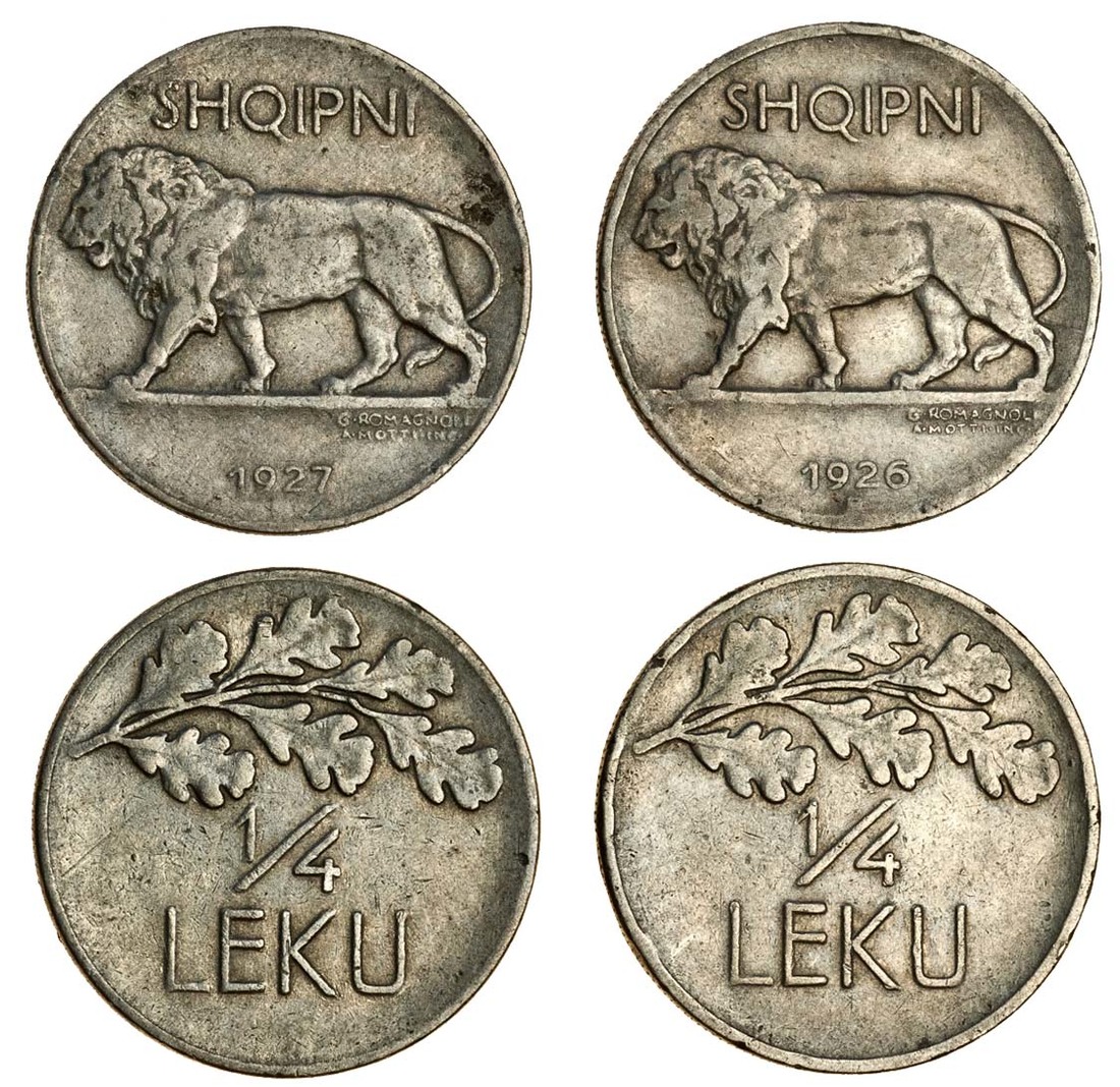 Albania, Amet Zogu, as President (1925-39), Lek (4), 1926, 1927, 1930, 1931, Half-Lek (3), 1926, 1930, 1931, and 1/4-Leku, 1926, 1927, lion left, rev. value, very fine and better (9)
