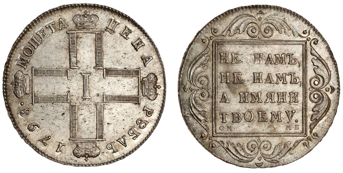 Russia, Paul I (1796-1801), Rouble, 1798CM, St Petersburg, four crowned monograms cruciform, rev. inscription within ornamented square (Bitkin 32; Dav.1688; KM C101a), lightly toned, about extremely fine