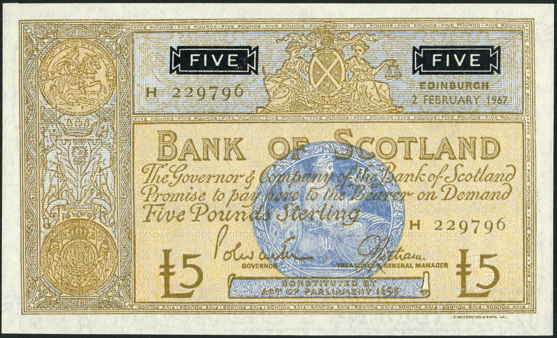 (x) A group of Scottish notes, comprising The Royal Bank of Scotland, £5, 1964 serial number H53163028, Bank of Scotland, £1, 1969, prefix A/9, £5 (3) 1965, prefix C, 1967, prefix H, 1969, prefix C