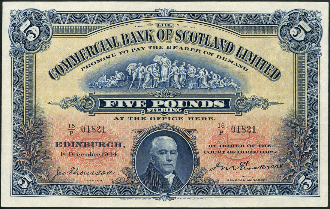 (x) A small group of Scottish notes, including Clydesdale & North of Scotland Bank, £20, 1961, prefix D, Commercial Bank of Scotland, £5, 1944, prefix 15/P, National Bank of Scotland, £20, 1957, prefix A, National Commercial Bank of Scotland, £20, prefix A