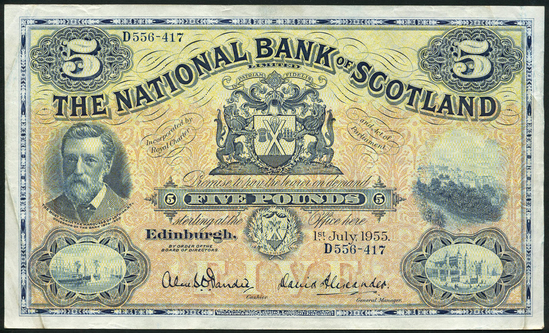 British Linen Bank, a group comprising £1 (4), 1947,1967,1969,1970, £5 (5), 1956,1962,1964,1968 (2), also National Bank of Scotland £1 (6), 1934,1942,1949(2),1956,1958, £5, 1955 and £5, 1957