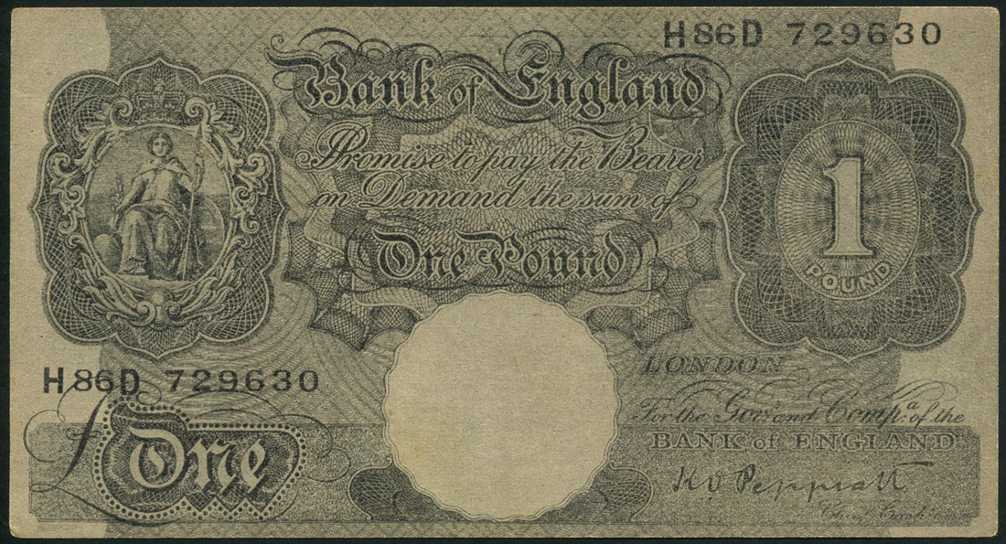 (x) Bank of England, propaganda notes, £1 (6), c.1940-44, all serial number H86D 729630, black and dark green, Britannia at top left, reverse with Arabic text,