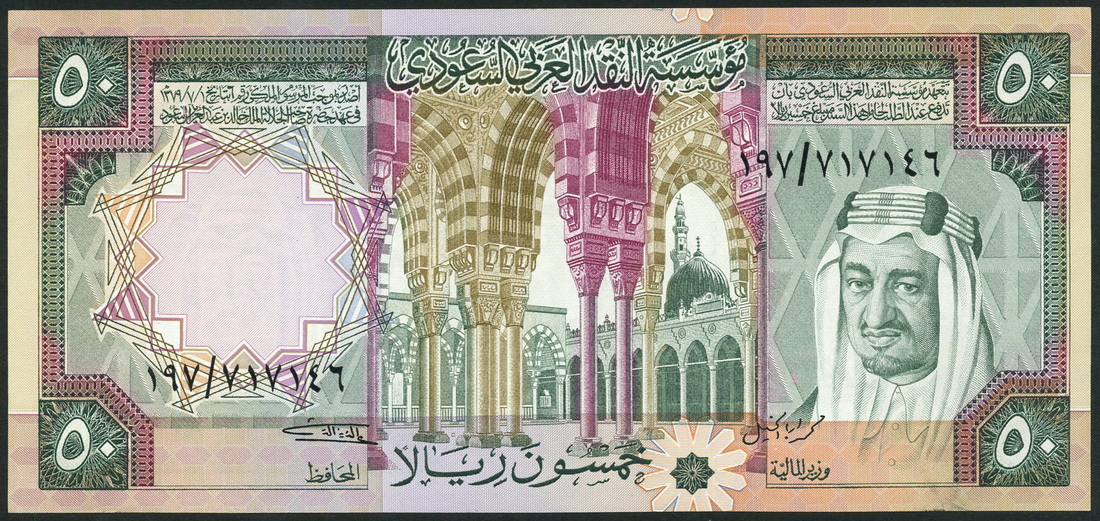 Saudi Arabian Monetary Agency, a group of third issue notes comprising, 1 riyal, 5 riyals, 10 riyals, 50 riyals and 100 riyals, 1976, first four feature portrait of King Faisal, fifth features portrait King Abdul Aziz ibn Sa’ud, together with 5 riyals, 1984, featuring portrait of King Fahd