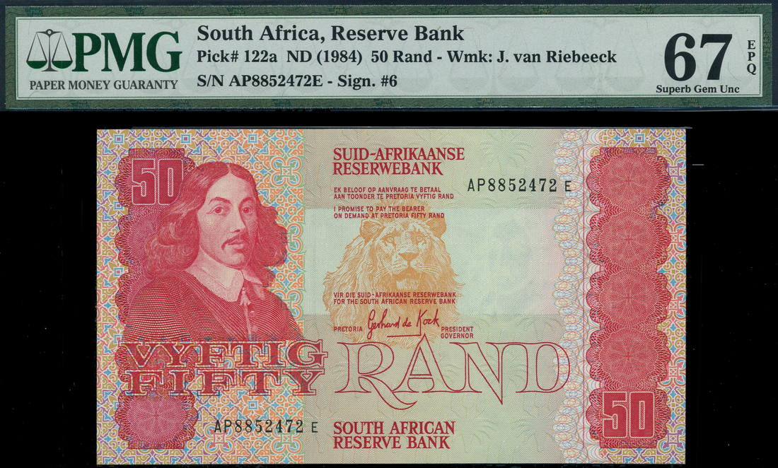 (TBB SARB B51, Pick 122a), in PMG holder number 67, superb gem uncirculated, EPQ, exceptional grade and underrated