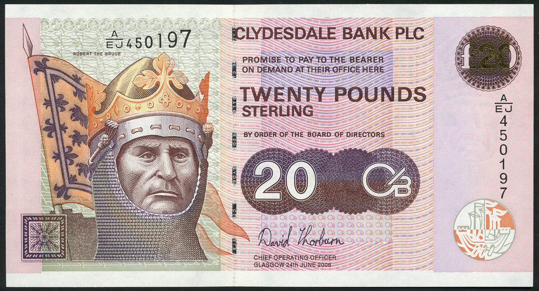 (x) Scotland, a group of more modern notes including Bank of Scotland, £1, 1972, 1988, 2007, £5, 1988, 1990, Royal Bank of Scotland limited £1 (2), 1976, 1981, £20, 1981, Royal Bank of Scotland plc, £1 (7), 1992-2001, £5 (2) 2005, £10, 2008, Clydesdale Bank, £5, 2009, Clydesdale Bank plc, £1,1983 £20, 2006 and a Commemorative Royal Bank of Scotland, Jack Nicklaus £5