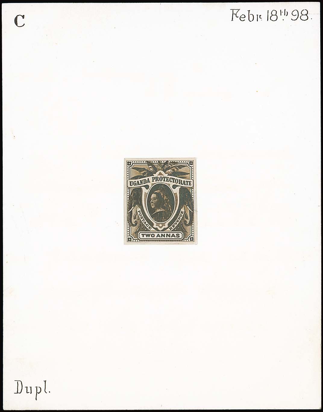 2a. stamp-size small format similar to issued design but lacking shading, affixed to card (90x115mm.) lettered "C" and dated "Febr 18th 98". Photo