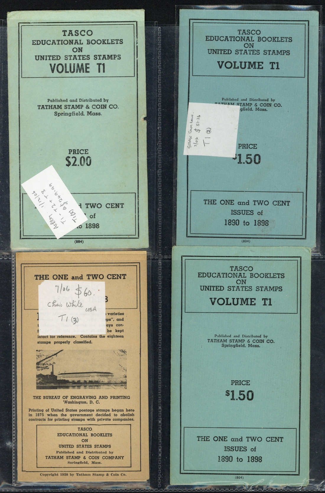 Collection of TASCO (Tatham Stamp Company of Springfield, Massachusetts) Educational booklets, 100+ contained in a blue binder, many in their original envelopes and with contents, some duplication, chiefly fine