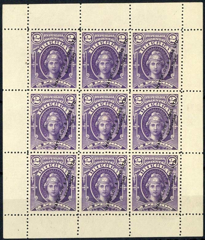 1894 2p. printer's sample in purple, complete sheetlet of nine, each overprinted "waterlow & sons/specimen"; unmounted mint except central stamp that has been mounted and thinned. Fine