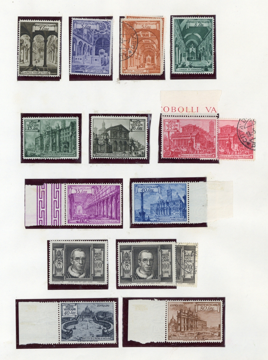 1931-74 mostly mint collection housed in an album, hundreds, including 1938 Archaeological set, 1948 Tobias 250L. and 500L. 1949 Basilicas with Express, 1949 U.P.U. set, 1951 Beatification, 1951 Council of Chalcedon, 1951 Gratian Air set, 1952 Papal States stamp centenary miniature sheet, 1953 Air 1000L. blue and deep blue, 1953 Libri Sententiarium, etc., chiefly fine with many unmounted mint