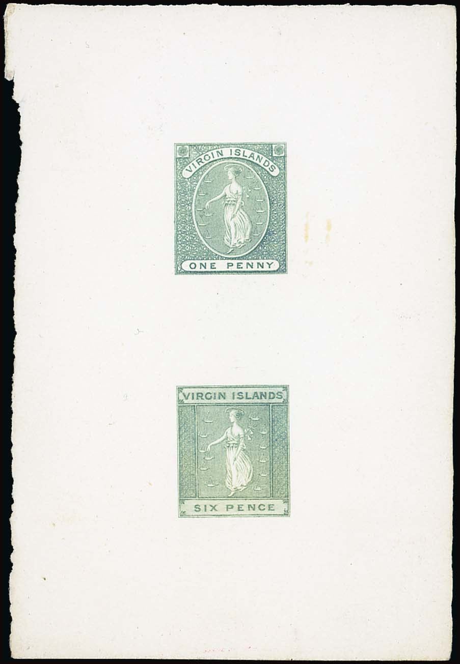 1d. and 6d. in sage-green on single card (73x108mm.). Photo