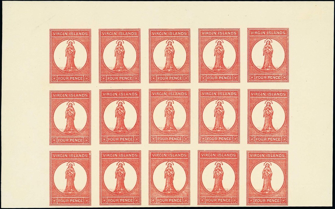 4d. red block of fifteen (5x3), being the complete top three rows of the sheet with large sheet margins. A rare and impressive multiple