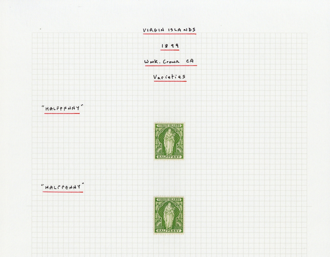 ½d. (3, one showing variety "halfpfnny" and another showing variety inverted "l" in "halfpenny") to 5/-, and a letter from the chief clerk at Tortola at the time of the 1899 issue concerning the number of errors; 4d. with some gum creases, otherwise fine mint. S.G. 43-50, 43a, 43b