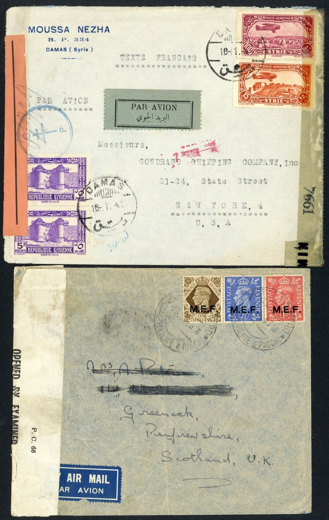 Middle East selection of covers (17), including Iraq 1935-44 three Air Mail covers, Jordan, Lebanon 1941 censored to the U.S., Sudan 1931-49 six Air mail covers, Syria, etc., chiefly good to fine