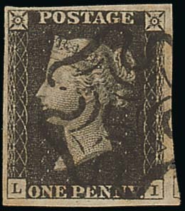 LI good to very large margins all round and showing a portion of the adjoining stamp at lower right, crisp black Maltese Cross cancellation, fine. Matched in red, touched at lower left, one entire to the Isle of Wight. Photo