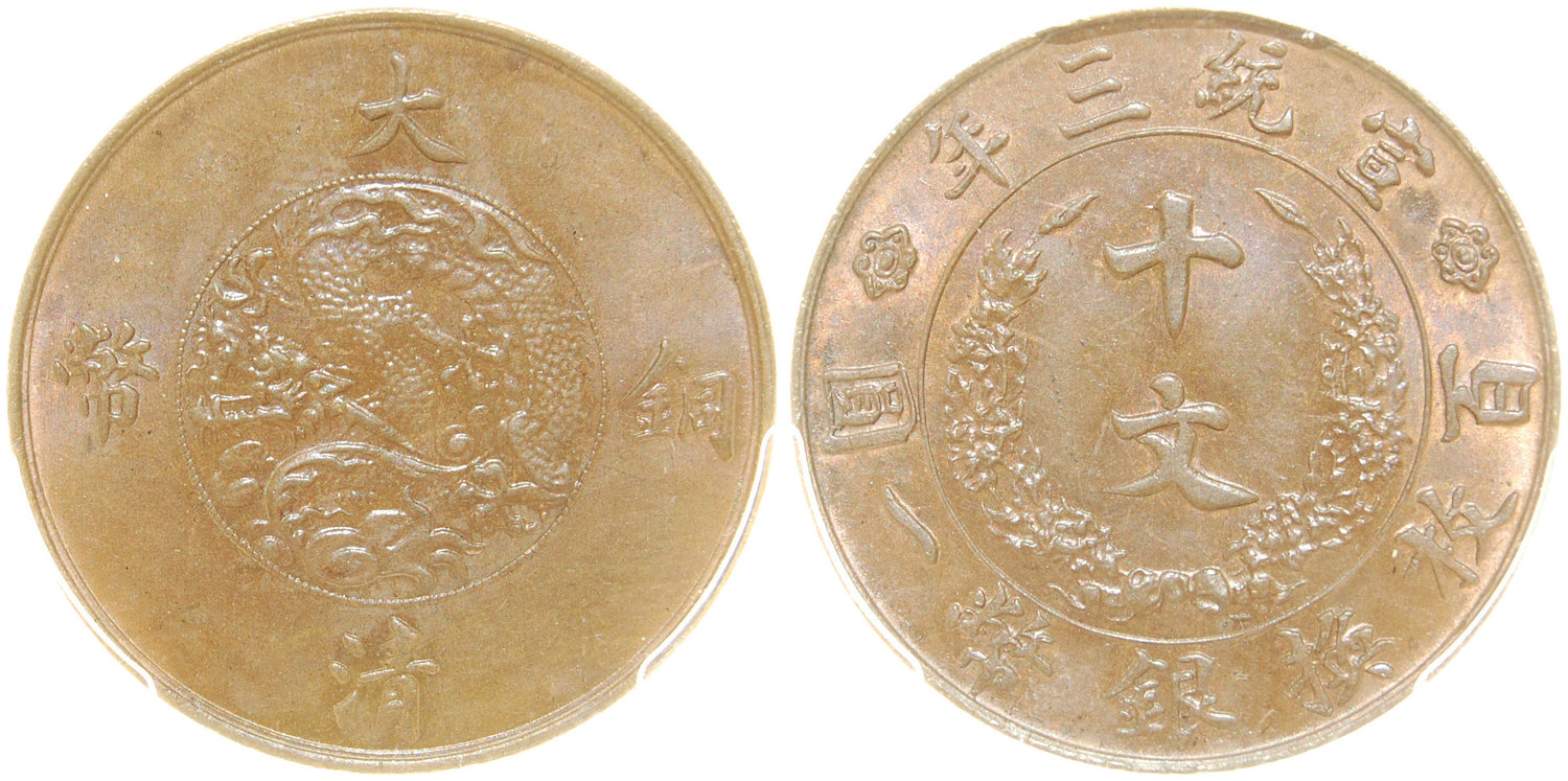 China, Qing Empire, copper 10 cash, 1911, copper coin of the Ta Ching,
