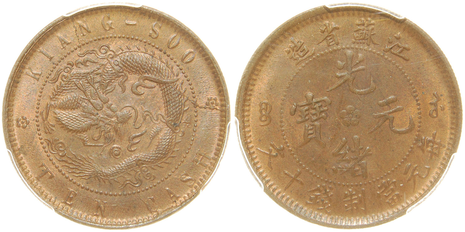 China, Kiangsu Province, copper 10 cash, 1902, (Y-162.4), PCGS MS64RB, choice