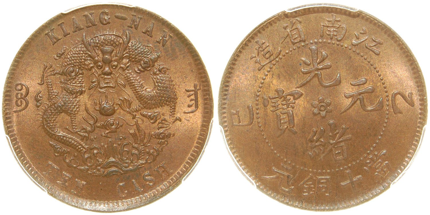 China, Kiangnan Province, copper 10 cash, 1905, (Y-138.1), PCGS 65+RB, very choice in this condition