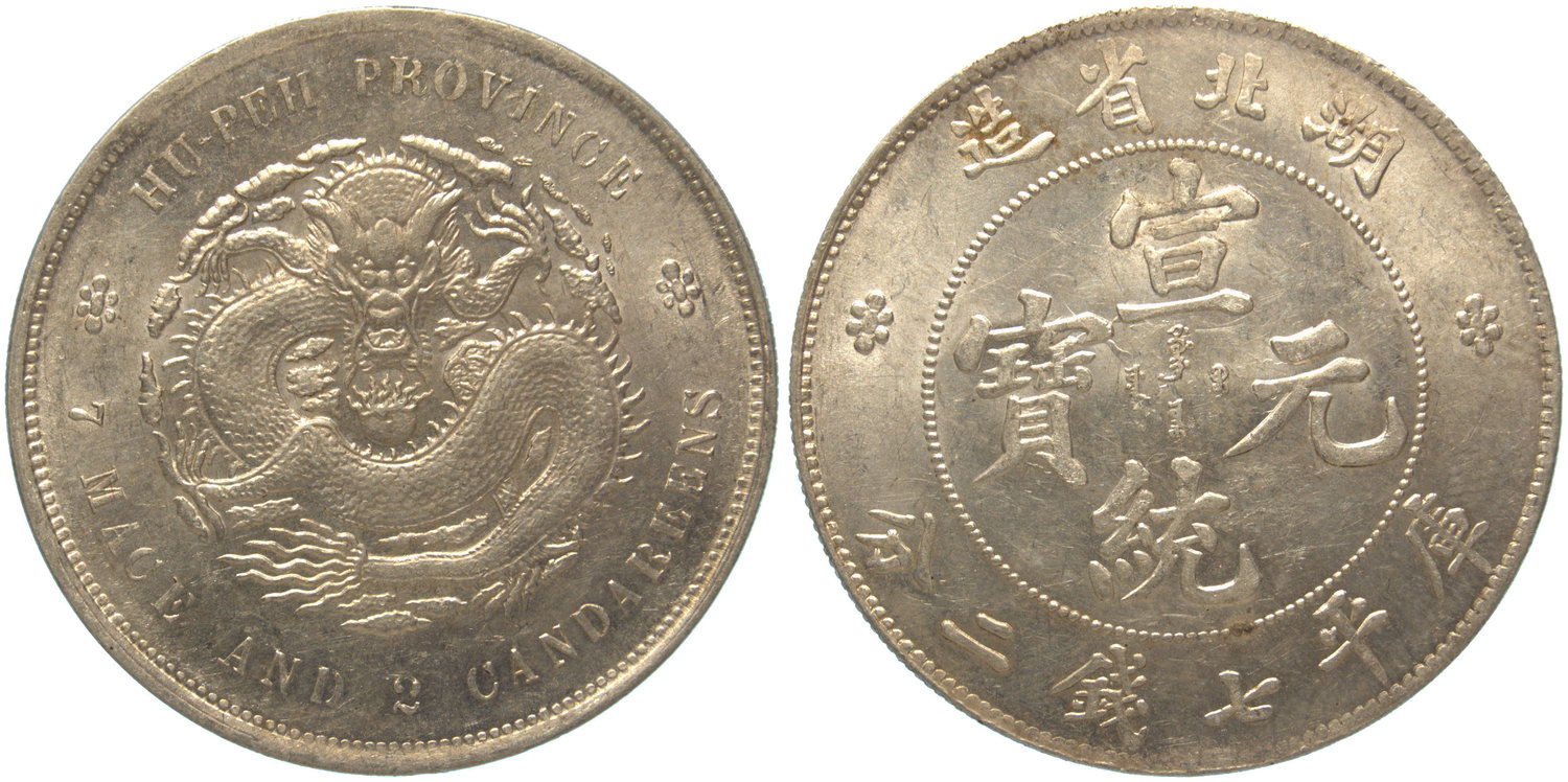 China, Hupeh Province,silver $1, Xuantong era,dragon on obverse,